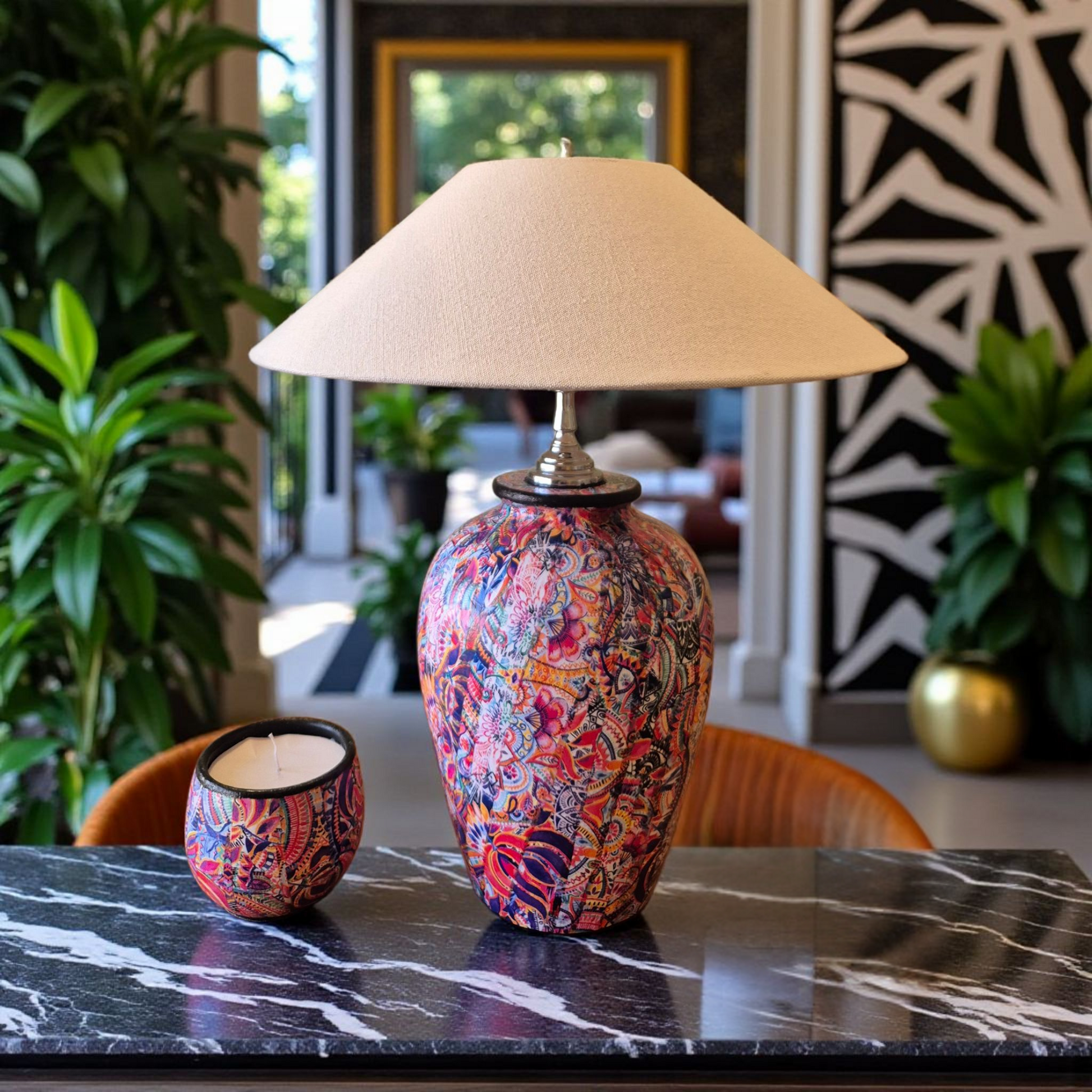 Unveil Vibrant Artistry with the "Kaleidoscope Bloom" Decoupage Art Pattern Table Lamp & Candle Set